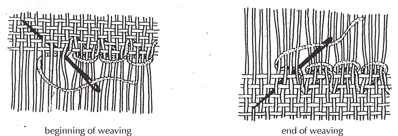 the left. Then leave a thread 4 times the width of weaving. Then follow instructions below: