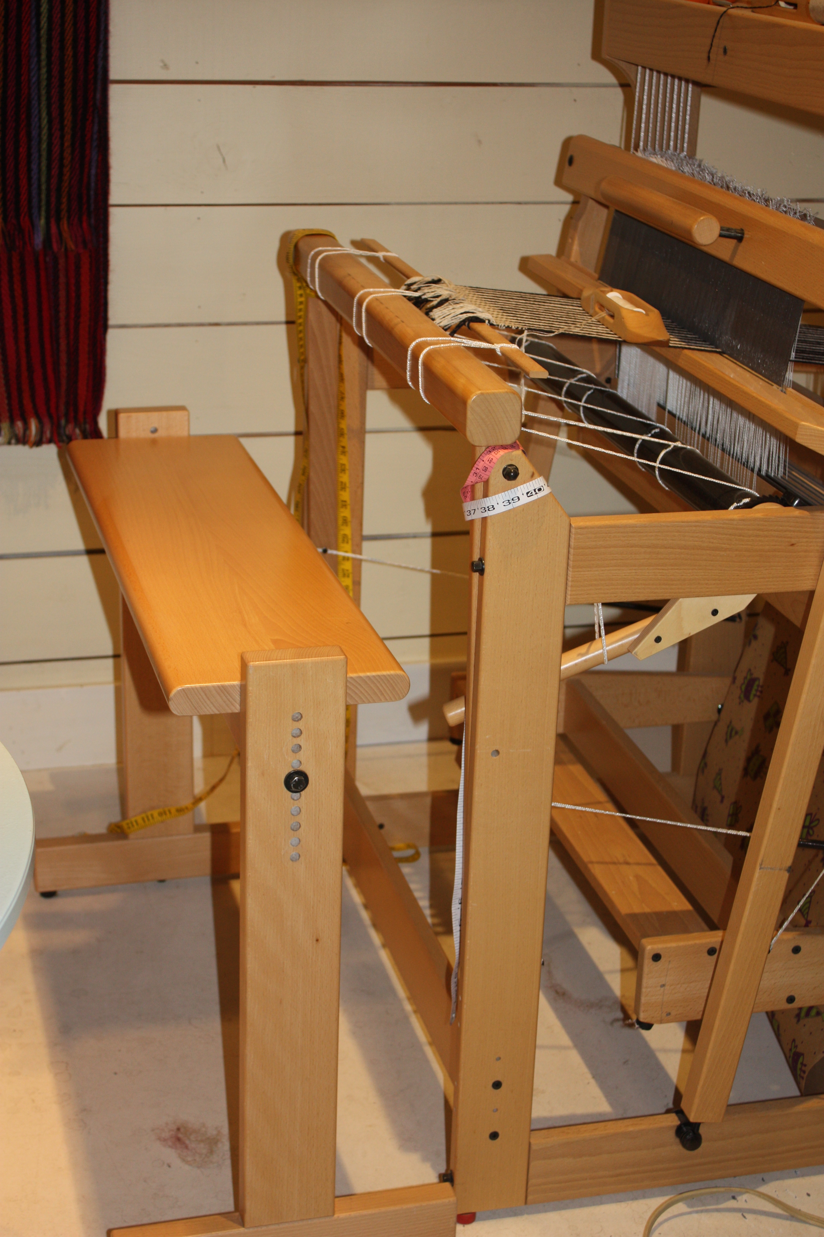 The treadle has 3 options for position and the bench has around 10….so you should be able to get the best feel for your body….torso and leg length are different for everybody which is why there are so many options. I’m sorry you had troubles threading but there is really no need for any problems…..the breast beam just lifts off and the entire beater lifts out of the loom. This allows you to sit on a chair right inside the loom and thread at a proper height. I can’t show you this in a photo as my looms are dressed at the moment. However, dressing all Louet looms are pretty much the same and you see how I remove the breast beam and the beater on Youtube….just search Louet Looms and there is a series of videos…..you want to watch the Spring videos to see this. When my arms are bent they sit comfortably on the breast beam. I hope this information is helpful.