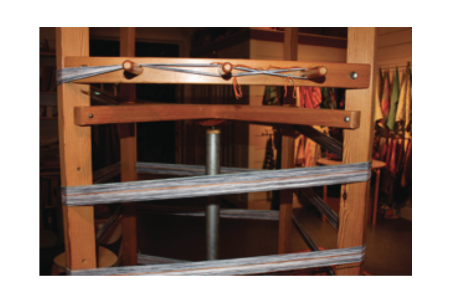 - Spread your warp to the desired weaving width, distributing your warp threads evenly across the raddle. IMPORTANT: If you have warped with more than one thread, never split the thread groups going through the raddle!