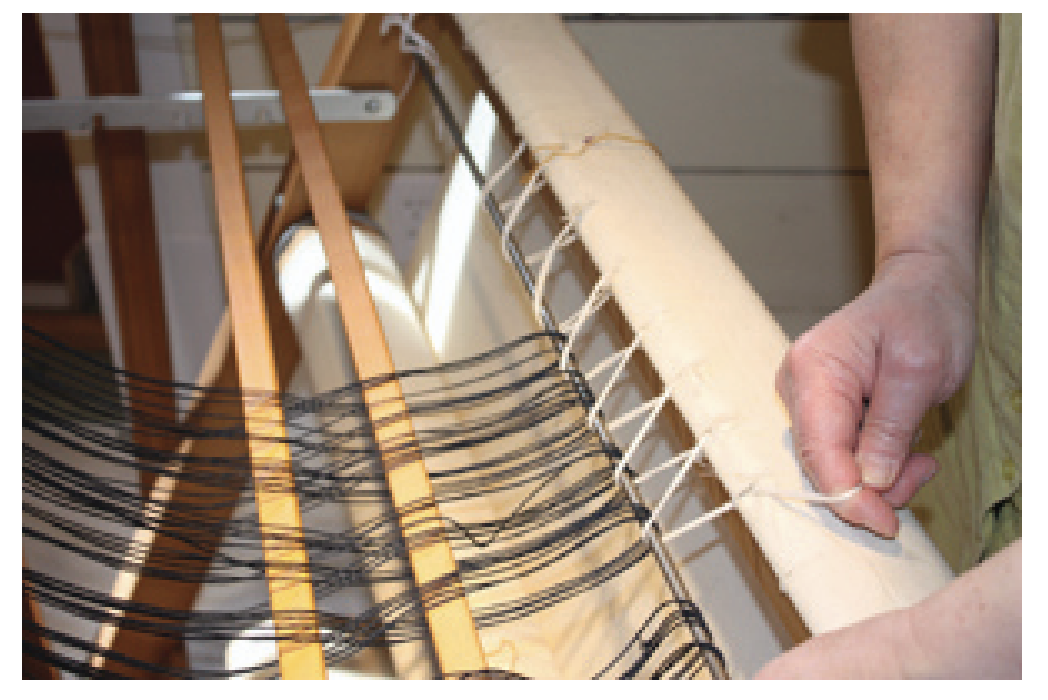 - Before rolling your warp on, it will be necessary to lash the warp rod to the apron rod to prevent the rods from bowing.