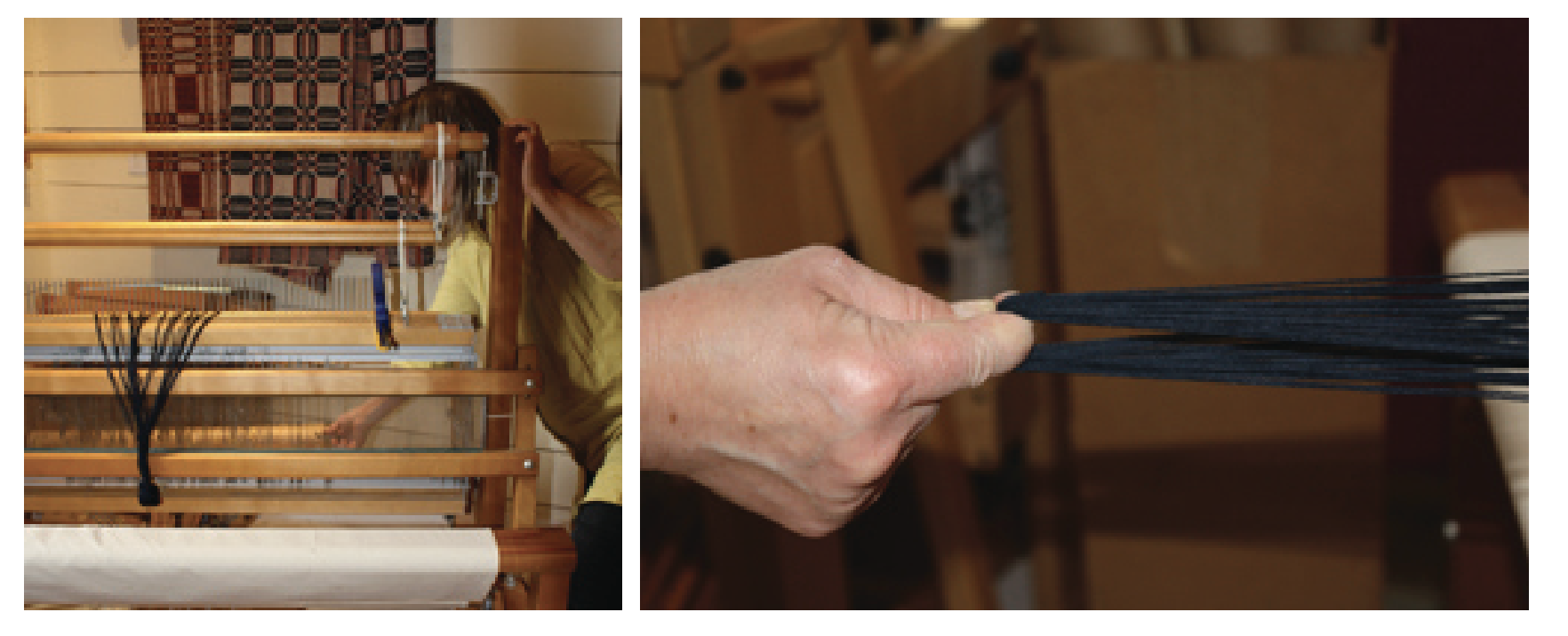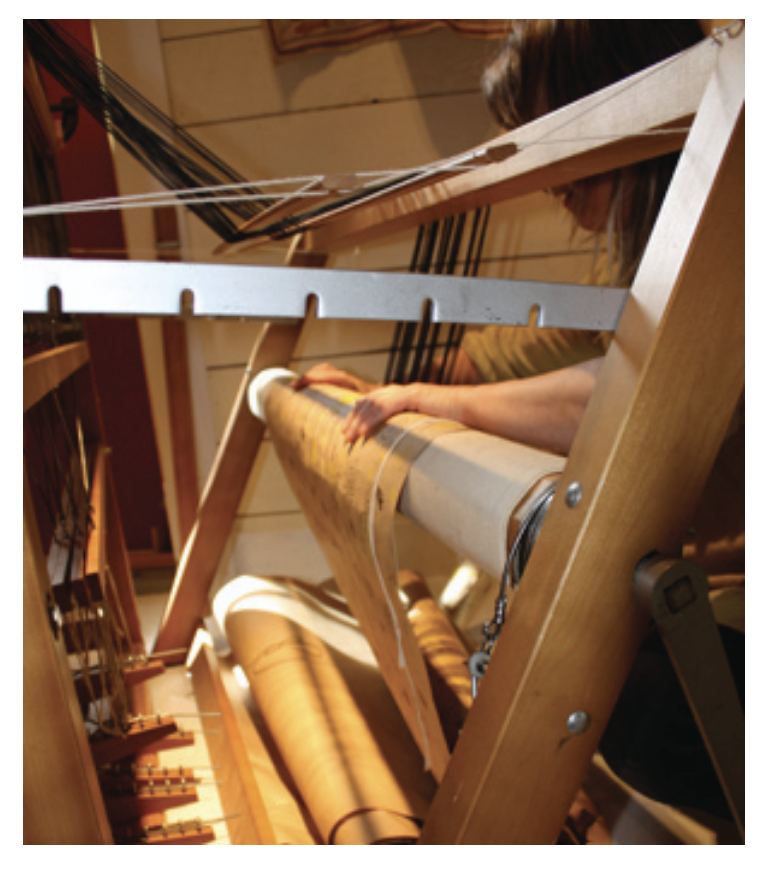 - If warping alone, move your books (weights) as needed to ensure that the warp stays weighted and that the threads are in line. REPEAT UNTIL WARP IS WOUND ON LEAVING ENOUGH TO THREAD AND SLEY.