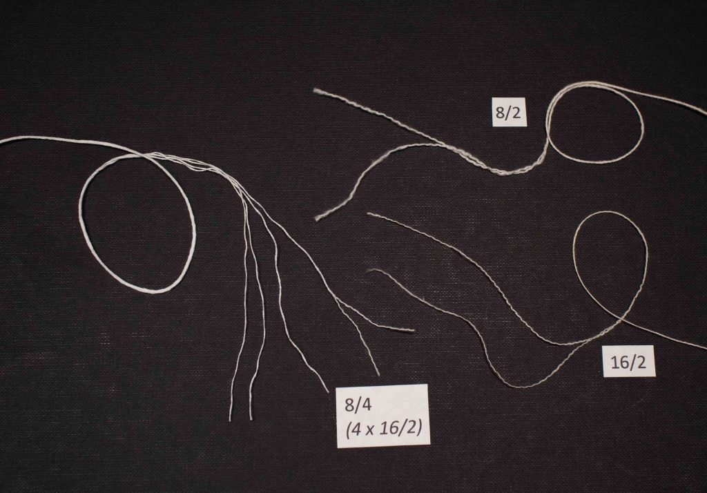 Question: I was wondering if your 16/2 cotton was unmercerized? I’m assuming if your cotton doesn’t say mercerized then it isn’t. Could you tell me the difference between 8/2, 8/4, and 8/8?