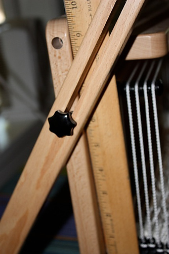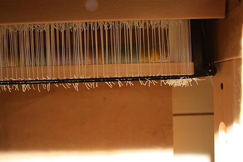 Question: I have a Jane 70 on a stand, and it seems I am always tweaking the shaft height to figure out where is the best shed. How big should the shed be on a Jane loom, and how high should the shafts be set at rest? I note that my floating selvedges are not in the centre of my shed, and wonder if I have the shafts set too high. When the shafts are down there is about 1/2 inch between the bottom of the shaft and the elastic cords.