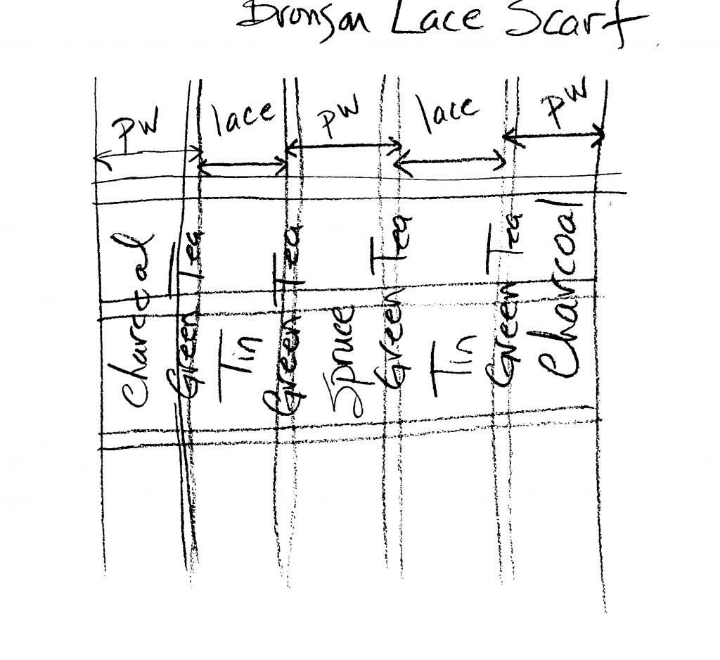 She knew her EPI was going to be 24 because we discussed it based on all the sampling we do around here. She figured out how wide and how long, then she drew her graphic…..got her number of warp threads…fiddled around a wee bit making the lace threading fit (based on Season 1 Episodes 5 and 6, Divison of Space),