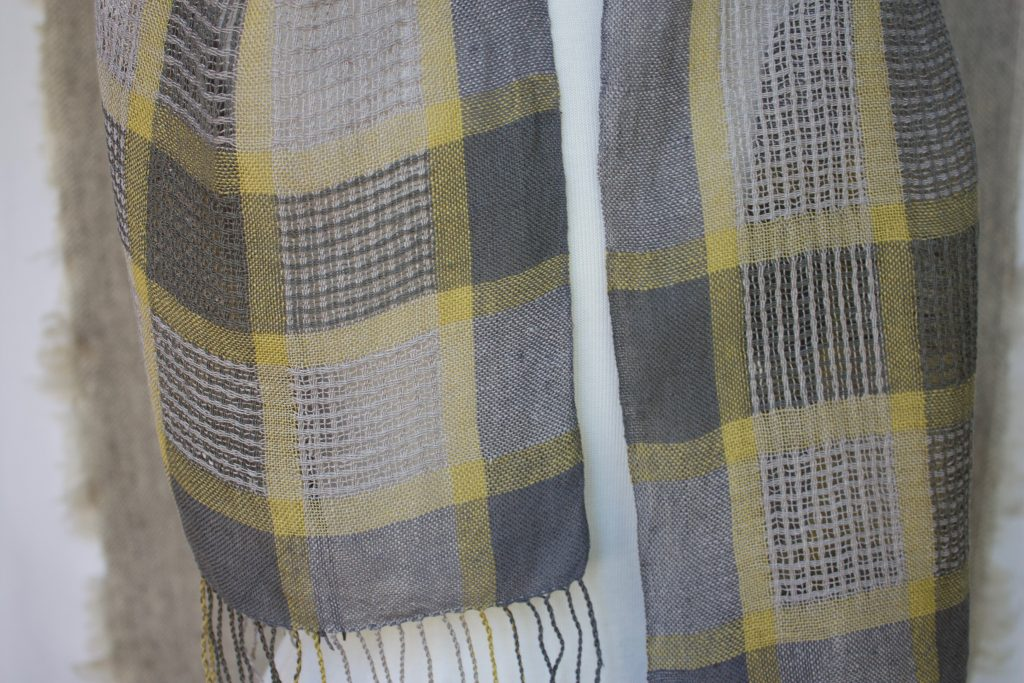 Linda took it all tad further with this beautiful fine 40/2 linen scarf where she inserted some Bronson Lace into the graphic.