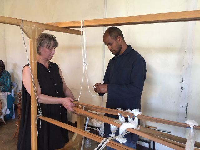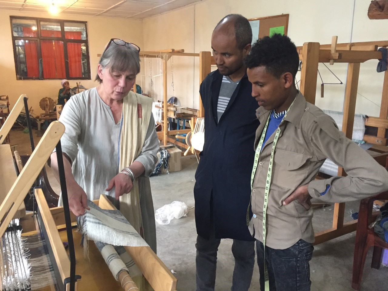 I arrived in Ethiopia armed with samples. We put our first test warp on the Jane Loom that Louet had provided to them a few years back on my first trip. We wove, resleyed, wove some more and resleyed. We used different wefts and combinations of wefts, cotton with some recently acquired wool and linen, cotton with handspun cotton and handspun silk weft, singles, doubles, triples, changed the sett again, tried clasped weft and….we learned a lot.
