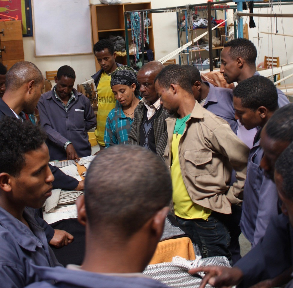 On our last day together, Ermais, Anteneh and Ayele presented our sampling to the greater body of weavers at Sabahar. They were so empowered as they shared what they had learned with their fellow weavers. These weavers will then share with the outside weavers and the learning will continue to seep beyond.