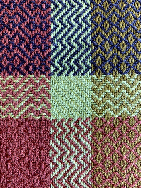Twill sett used was 20 epi; I find that I can beat this sett at 20 picks per inch consistently and the resulting cloth is still sturdy enough but also has some nice drape.