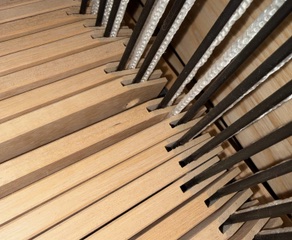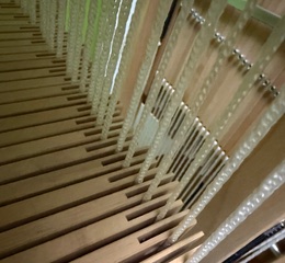 The problem: It turned out that the issue was slightly warped or twisted shafts, on the bottom at this point. These were not large warps in the wood, they were subtle and didn't hang up every time, but did hang up often enough that weaving became problematic. I think it has to do with the loom being made in The Netherlands, near the sea, and now residing on the very dry Canadian Prairies. Even with the addition of a humidifier to my household I have had some of the shafts just kind of twist. They twisted enough that when they came back down after being lifted they hung up on top of an adjacent shaft, or an adjacent shaft that had been lifted plunked itself on top of the twisted shaft and wouldn't go all the way down.